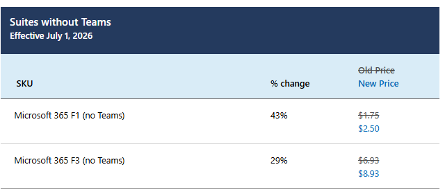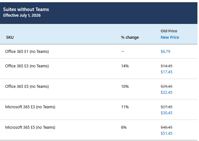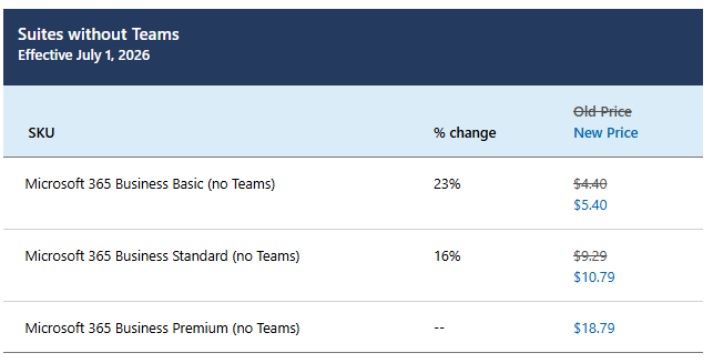 - Standalone Teams și Copilot SKUs nu fac parte din acest update.