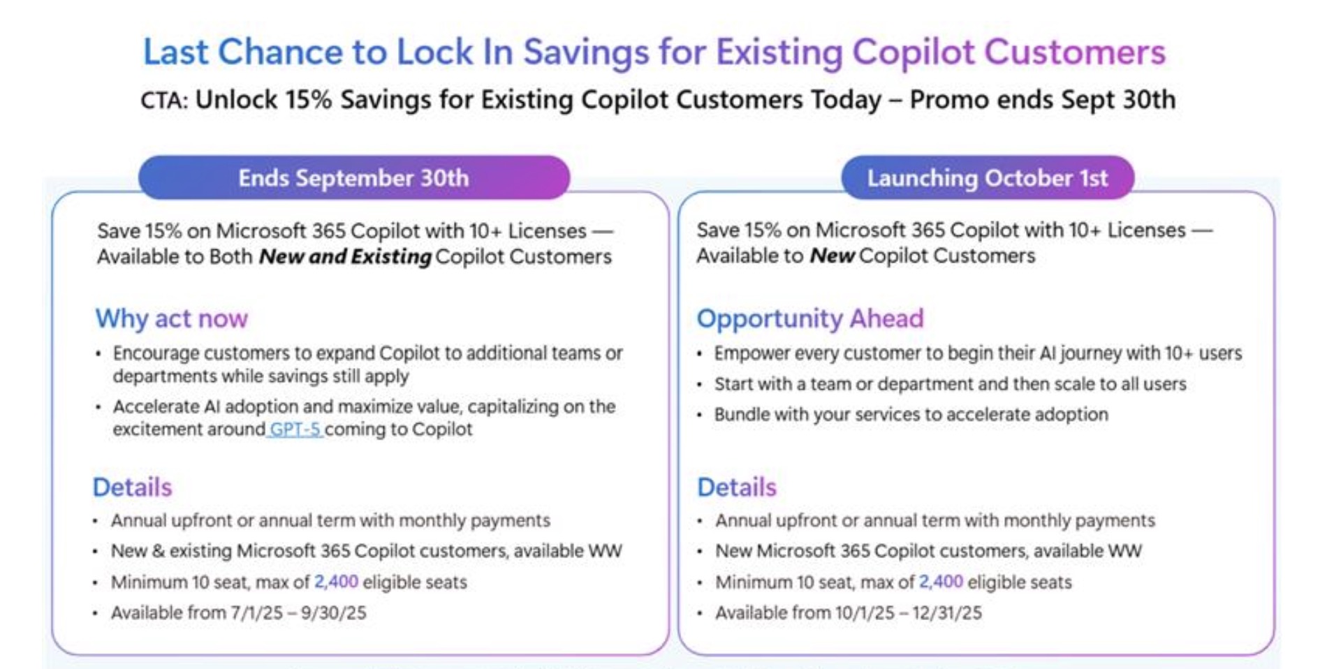 Do 30. září 2025 totiž běží promo, které umožňuje získat 15% slevu na roční předplatné Copilotu (pro 10–2400 licencí). Tuto slevu mohou využít noví i stávající zákazníci.